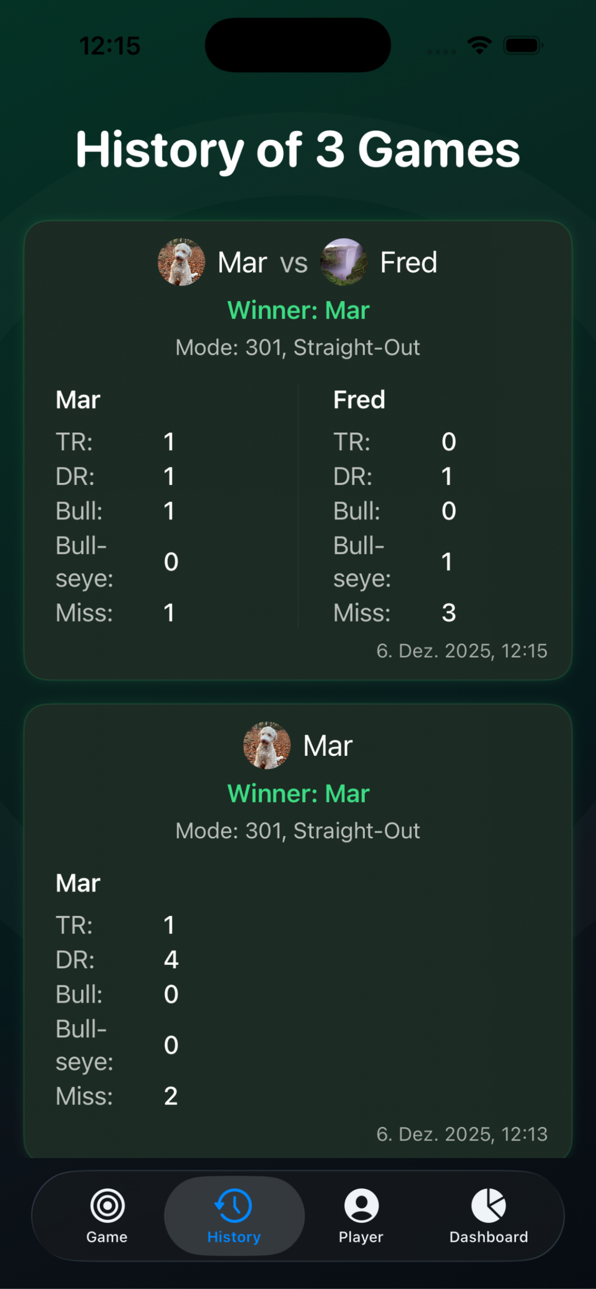 Lege individuelle Avatarbilder für deine Spieler an und verfolge deren Fortschritt in der Historie.